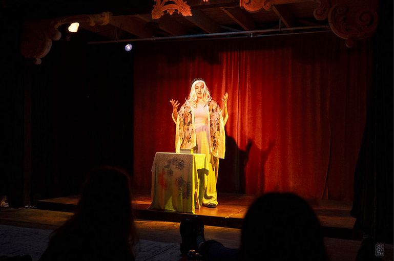 Last month, I went to a surprisingly delightful event in San Francisco, Fun Stuff. It was the first time in nearly 2 years that I felt like things were “back to normal” and I was sitting in a room with people outside of my bubble with seemingly all my worries behind. Magic was created by organizer Richie Rhombus. The performances ranged from belly-laughable comedians to sultry belly dances, and politically-charged spoken word performances.I haven’t been able to shake how much fun I had at “Fun Stuff” and it got me thinking – what does it take to build a Variety Show that someone won’t forget? Turns out, it’s many factors and, if done well, a Variety Show can build a new kind of art community. A community that is diverse, and unique which brings in an audience of richly diverse and unique folks as well.Richie organized the event in a very particular way. First, it was hosted in the intimate space Raining Chainsaws (lead by Noona Noland, Paul Hayes, Rose Harden, and Mark Perez) which featured art installations by Hayes and other delightful decor designed by the Raining Chainsaw’s team. Performances had a natural flow between them yet kept you guessing as to the type of performer that would follow the other. Each artist had their own unique point of view, individual talents, and ability to captivate the audience. I had moments where I laughed so hard I cried and moments I stood there wondering – wait, where am I (?!), completely in awe of a performer’s ability to suck me in.