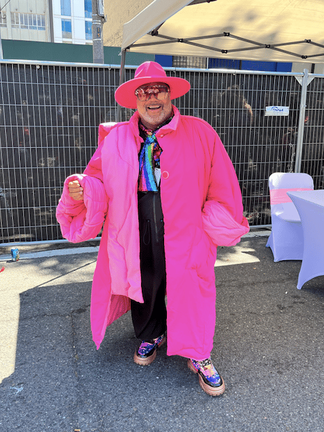 The weekend kicked off nice and early for me, as a handsome emailed invitation led me straight to the official PRIDE Press Preview news conference and cocktail hour, held on the gorgeous rooftop garden pavilion of the Fairmont Hotel. There, ABC7 News morning anchor Reggie Aqui, one of two openly gay co-anchor newscasters at the station, introduced the eight community and celebrity grand marshals and fielded questions from an audience comprised of local, national, and international media representatives. This year’s PRIDE Grand Marshals included long running Jeopardy! champion Amy Schneider, three time Grammy nominated Gullah style musical artist and vocal activist Melanie Demore, and Mellanique Robicheaux aka DJ BLACK, who preferred to be called the parade “Grand Marsha”, in homage to activist Marsha P. Johnson.