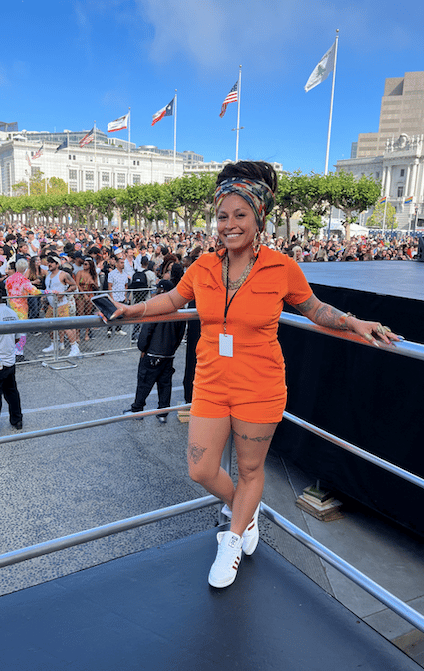 Monica came all the way to Atlanta to march in the 2022 San Francisco PRIDE Parade