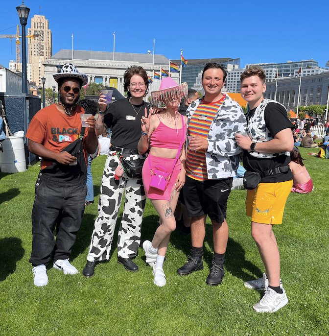 A colorful and color coordinating coven from Sacramento celebrating PRIDE at Civic Center