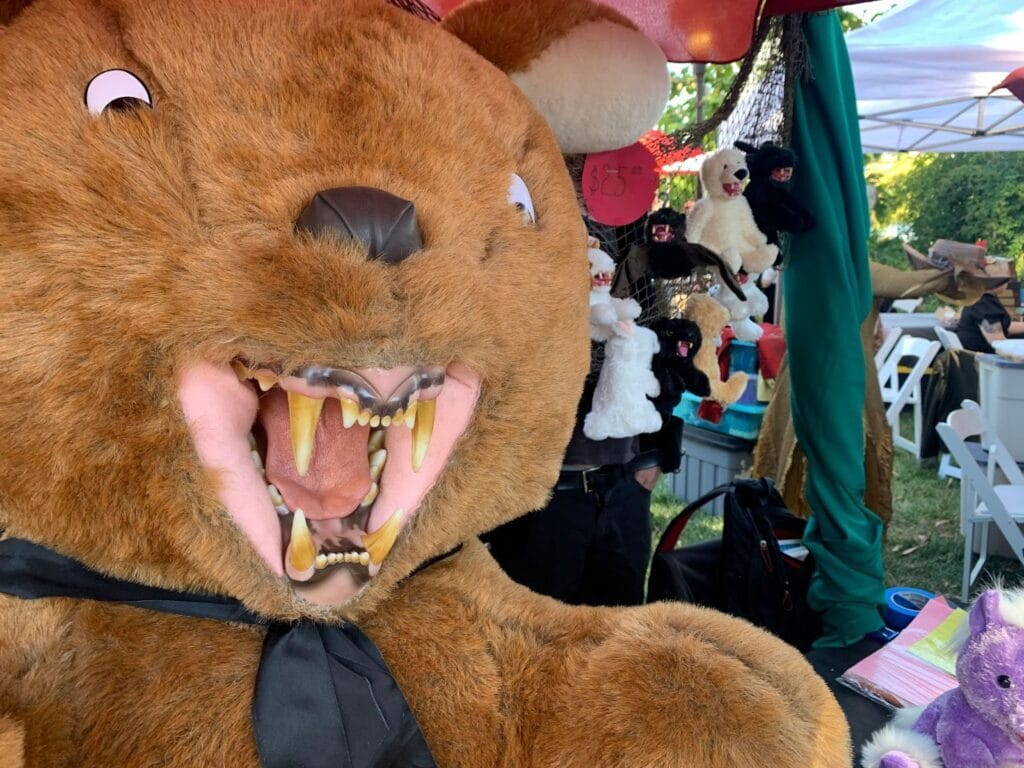 When I first saw the witch, she was wearing a dead creature around her neck, standing next to a stuffed, baby ostrich, and organizing a table full of decorative animal corpses, prodigious jewelry, and other paraphernalia from perdition. A synthwave song began to play from the DJ booth, and I thought, “well…there’s no way this won’t be interesting.”