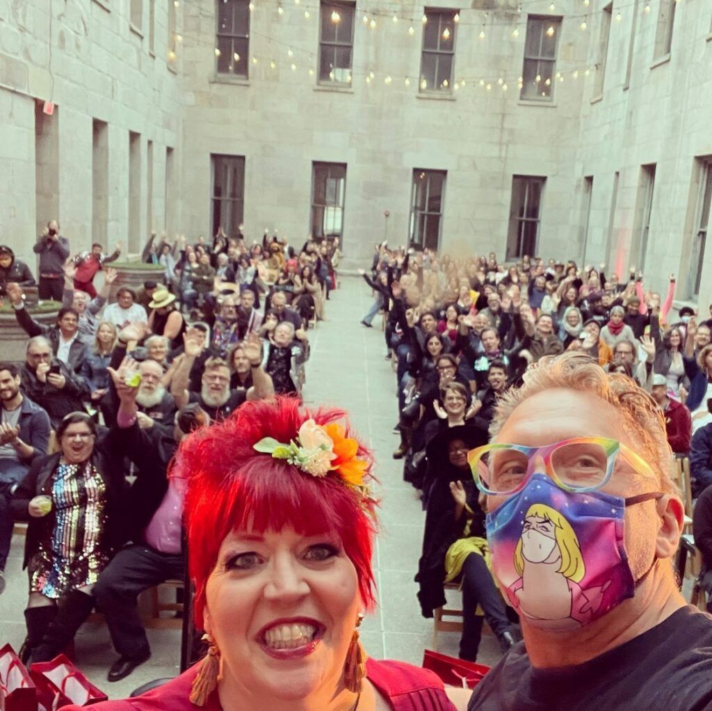 Her answer was this: “I’ve taken Bawdy all over the country before the Pandemic and people who listen to the Bawdy podcast email me to say their dream is to come to a live Bawdy, People in other cities are amazed at the energy of our live shows; every performer gets a standing ovation, the audience is friendly and welcoming, and you become a member of the family the moment you walk into the room. If you’re trying something out, a new gender expression or just intimidated by the word ‘sex’, they’ll help you feel at home. Our audiences make me so proud”.