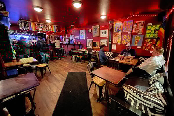 Every neighborhood needs a comfy dive bar, so we set out to make the Sycamore cozy and inviting, but not without an edge fitting for the vibe of the Mission. Murals by local artists adorn much of the outside walls, and we always have a rotating display of local art inside the bar.