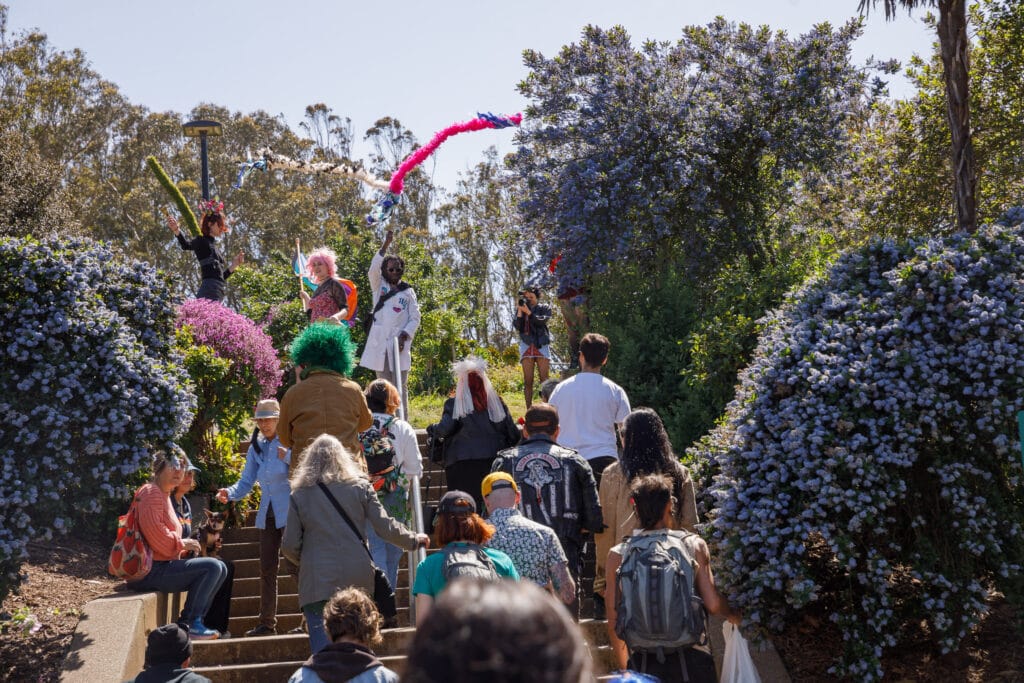Sprinkle and Stephens said, “We imagine the Earth as transgender, all genders and very gender queer. They use all pronouns.” We were led through the Bernal Heights neighborhood. Together we find our “E-spot” by smelling lavender. Thus titillated, we confessed the moments we first thought we might be ecosexual. A lot of arousing talk of worms, dirt touching, and ocean floating happened.