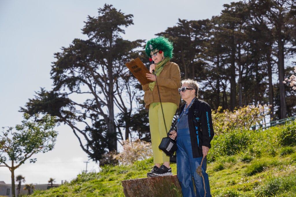 There is a not-so-secret art/activism movement roaming the streets of San Francisco. The Ecosexuals have come to entertain, to educate and to explore ways to treat the transgendered Earth as a consensual lover. They are Annie Sprinkle (former porn star turned sex-positive feminist, artist, and activist) and Beth Stephens, a UC Santa Cruz professor and filmmaker. This past Earth Day they and a sparkling array of artists and activists invited us to take a walk through Bernal Heights.