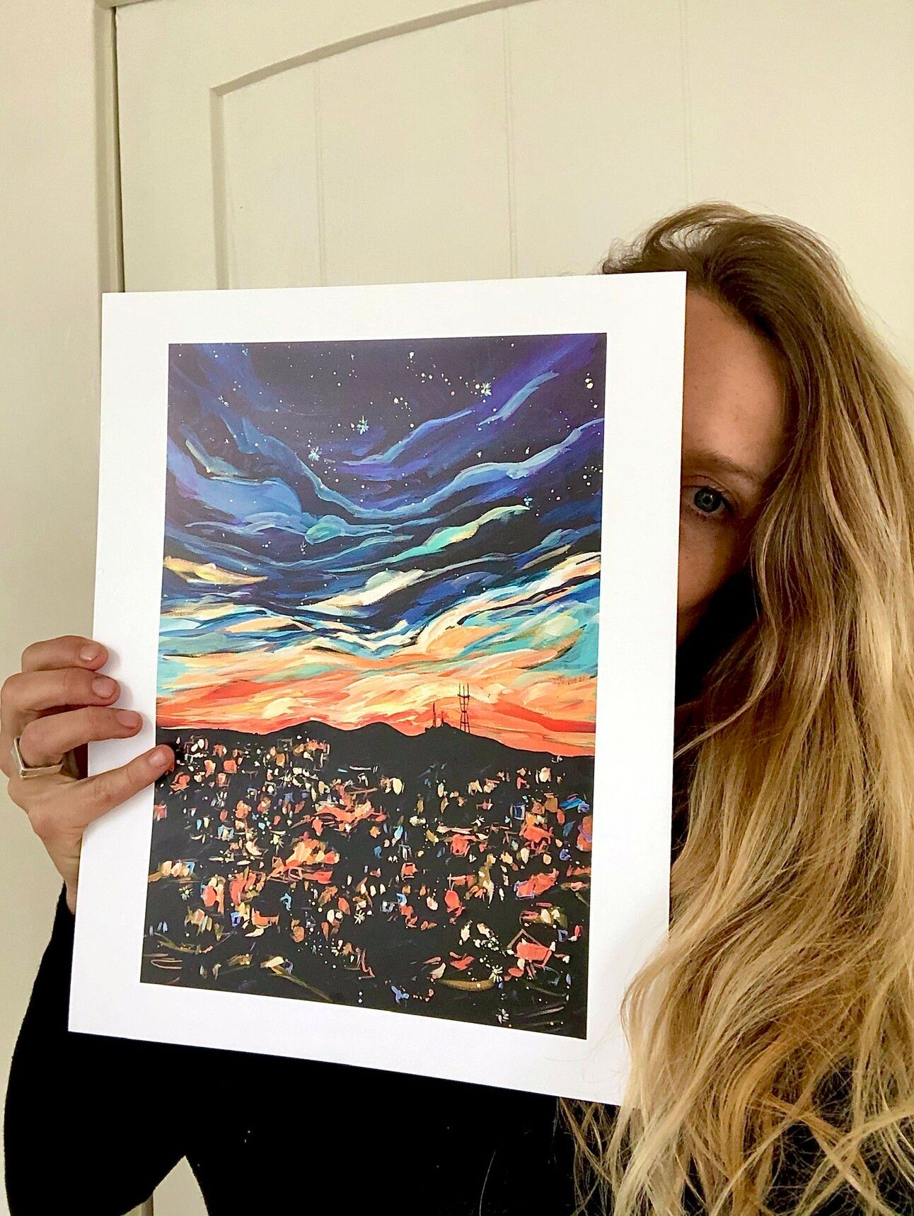 Rachel Znerold: I was bartending through college in Boulder, while building up my art portfolio. My job allowed me to befriend older people who could actually afford my artwork, so when I decided to sell all my paintings and move to San Francisco by myself, I miraculously made enough money to live for a year in SF without getting another job. Fifteen years later, I’m still here in the Mission, so grateful to be making a living as a full-time artist, only now I’m raising my own little six-year-old artist too…. It’s a hustle, but I love it.