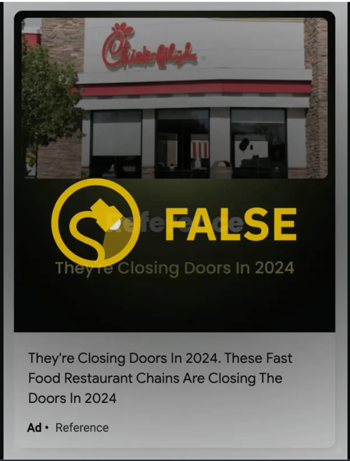 A clickbait ad campaign has been circulating the internet using images of popular, American fast-food restaurants like Five Guys or McDonald’s, that mislead the viewer into thinking they are going out of business or even being sold.
