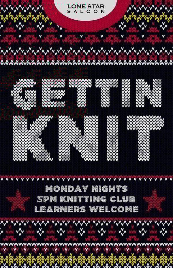 Gettin Knit – Knitting Night1/22 | The Lone Star Saloon | 1354 Harrison St, SF | 5 p.m. | Free