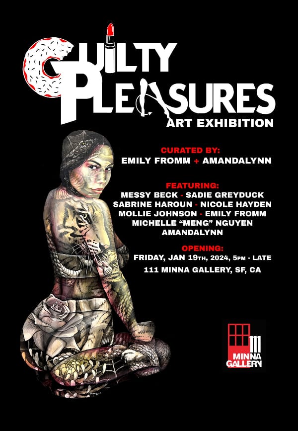 GUILTY PLEASURES – Curated by Emily Fromm and Amanda Lynn1/19 | 111 Minna Gallery | 111 Minna St, SF | 5 p.m. | Free, 21+