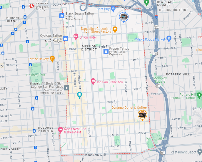 For example, according to Google Maps, Dolores Park, and by extension, Mission High School aren’t in the Mission District.