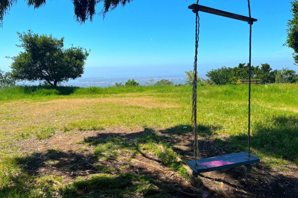 Keep in mind: This part of the trail doesn’t have much shade. While the swing is on a beautiful tree, you’ll want to hike this on a cooler day or keep the hike short and sweet. Also, this trail is dog friendly. ff you bring your pup, keep your eyes out for foxtails. There is tall grass everywhere on this trail and lots of foxtails.
