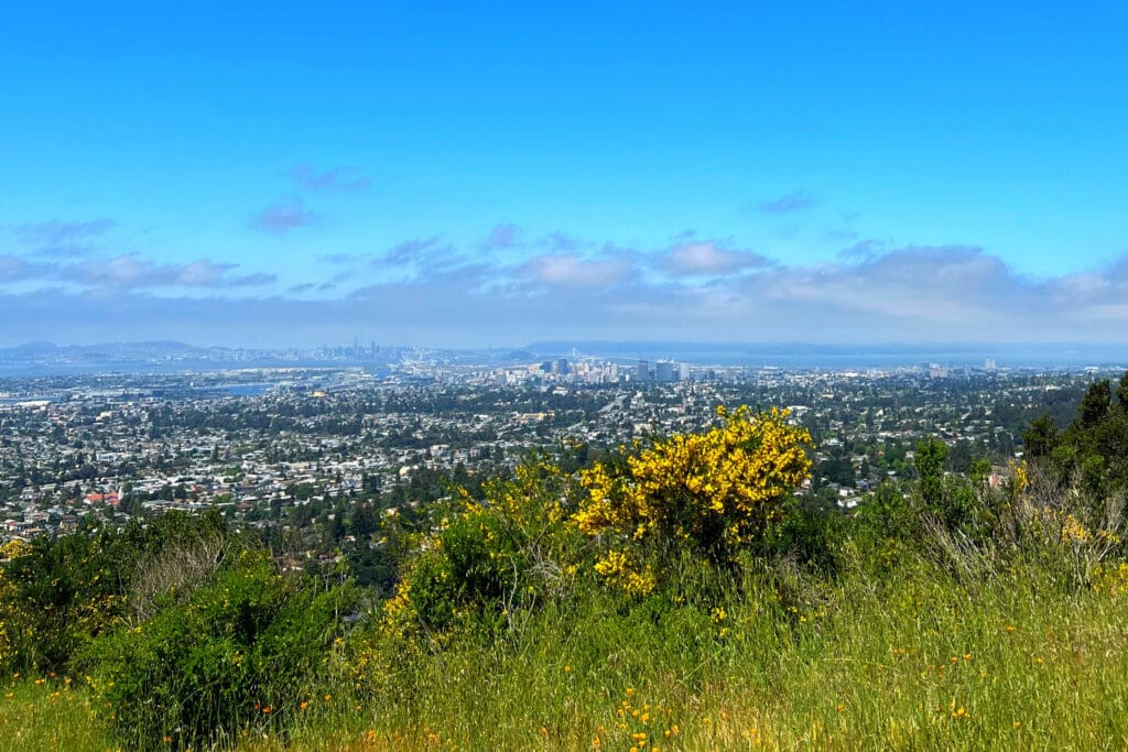 Walk along the side of the parking lot and it’ll eventually open up to a small maze of trails. Take the trails to the left for a little while and wander until you see a trail that goes up a very small hill to your right. This will take you to the panoramic views of The Bay. There, you’ll see the swing hanging from a tree as well as a bench which is perfect for sunset views of downtown Oakland and SF.