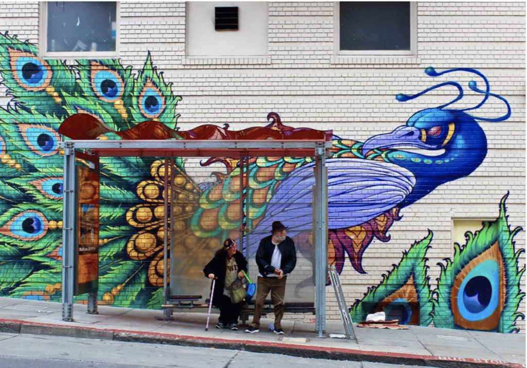 Tenderloin Peacock Mural by artist Darwin Bell.