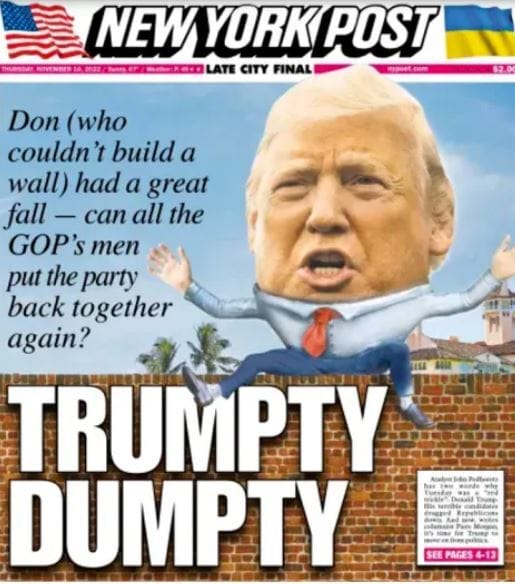 When Trump’s favorite election-denying candidates all lost their races in the midterms, even Conservative kingmaker Rupert Murdoch turned his back on the former President. Outright disparaging columns began popping up in conservative newspapers within the Murdoch empire. Now, The Donald is hawking NFT trading cards to pay his legal bills, as the Southern District of New York closes in. With his political cover blown, the greatest conman of a political generation may finally be out of confidence.