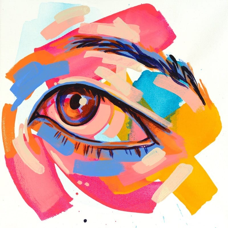 Piper—whose hair and makeup are often as vibrantly colored as her canvases—always seems to be up to something fascinating. So when a post crossed my Instagram feed asking for 50 new subjects for her latest show, I was intrigued. All I had to do was submit a photograph of my eye. I sent her a few. She selected the one where I looked the most angry (it was the hottest day of last summer, you were pissed about climate change to on that day too, I promise). If the eyes are the windows to the soul, Piper’s careful consideration of each subject becomes an act of trust—on both sides.