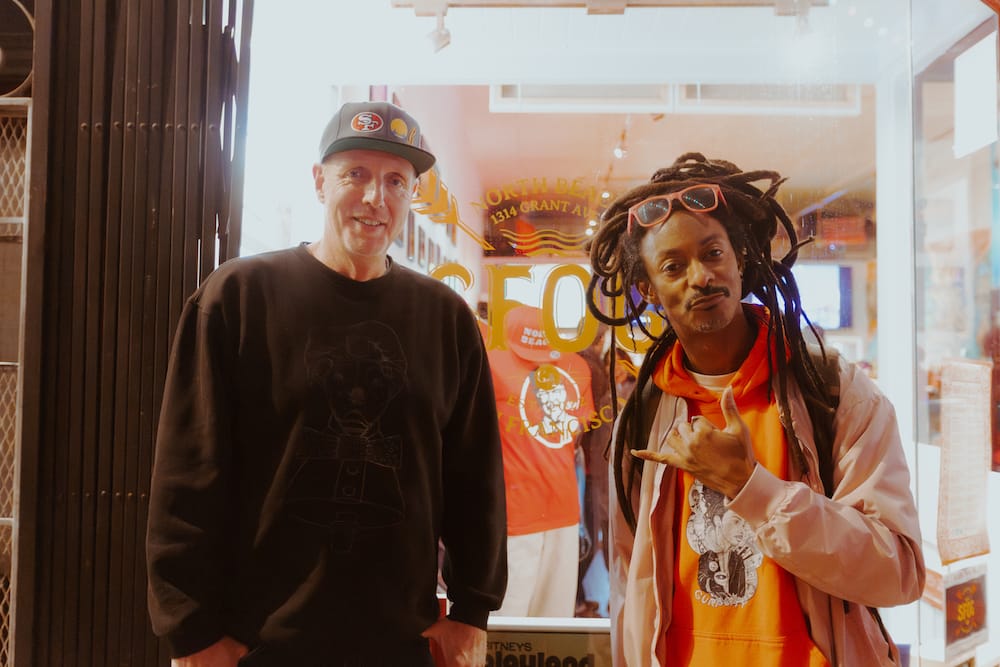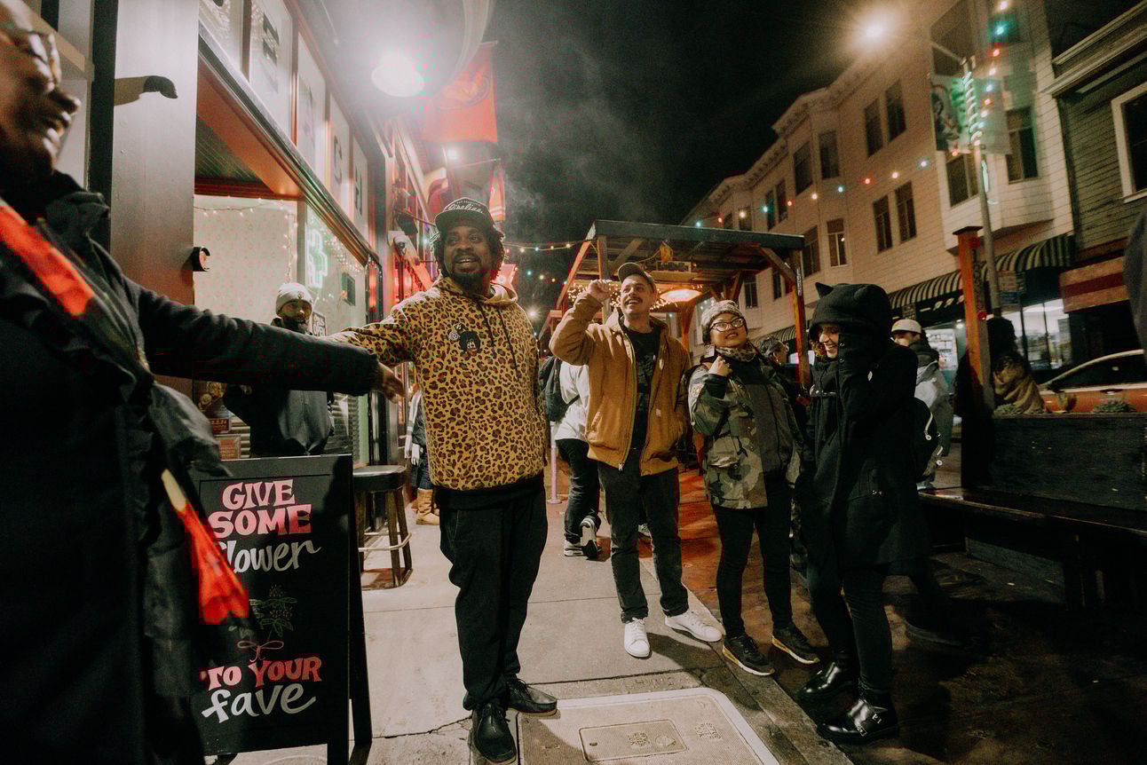 Out on the streets it was brown bags and tall cans. Folks lining the sidewalk huddled up under awnings to stay dry due to Google’s 100% inaccurate call of zero precipitation for the evening. Nobody cared, it was a family affair. Even 88 himself Eddie K made the trip to North Beach. Cats were making their way in and out of the neighboring North Beach Pipeline Dispensary and firing up the finest. Shout out to radio personality Wonway Posibul for sliding through and hopefully getting Z-Man live on the air at KALW 91.7.