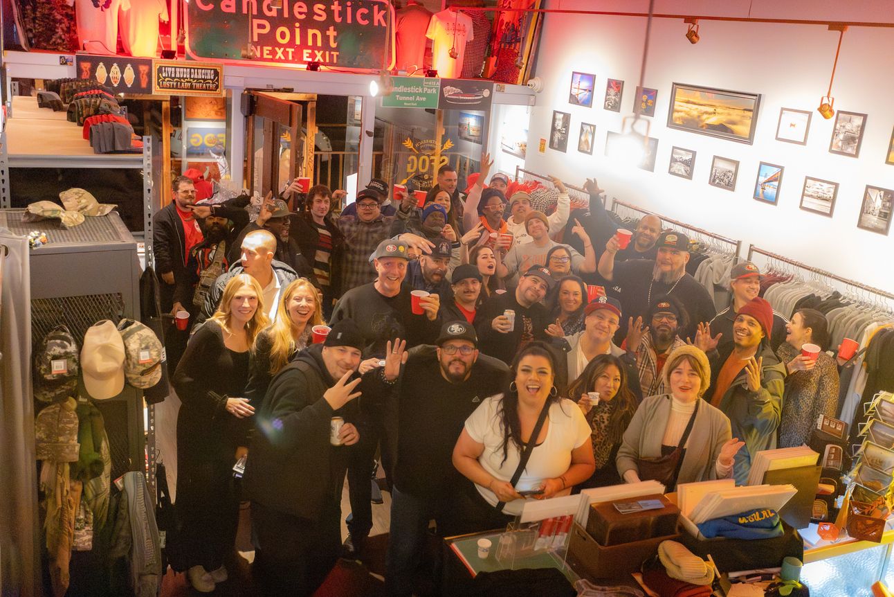 We locked up shop at the gallery around 10ish and headed across the street to meet up with Barry and the homies at SFOG. We had no idea what we were in for. You can’t, well actually you can and they did, give these Gurp City misfits a pour your own open bar, a dance floor, and a DJ spinning nothing but Bay and mainly SF classics. The right and left TV’s were showing 49ers Super Bowls from the 80’s and 90’s while the center tv had it locked on throwback music videos from your neighbors and mine, such as BPOS, Bored Stiff, Gas Mask Colony and a myriad of others local to the 7×7. Definitely be sure to stop by and check out the gear all printed in house at SFOG. Really great dudes, with really dope merch.
