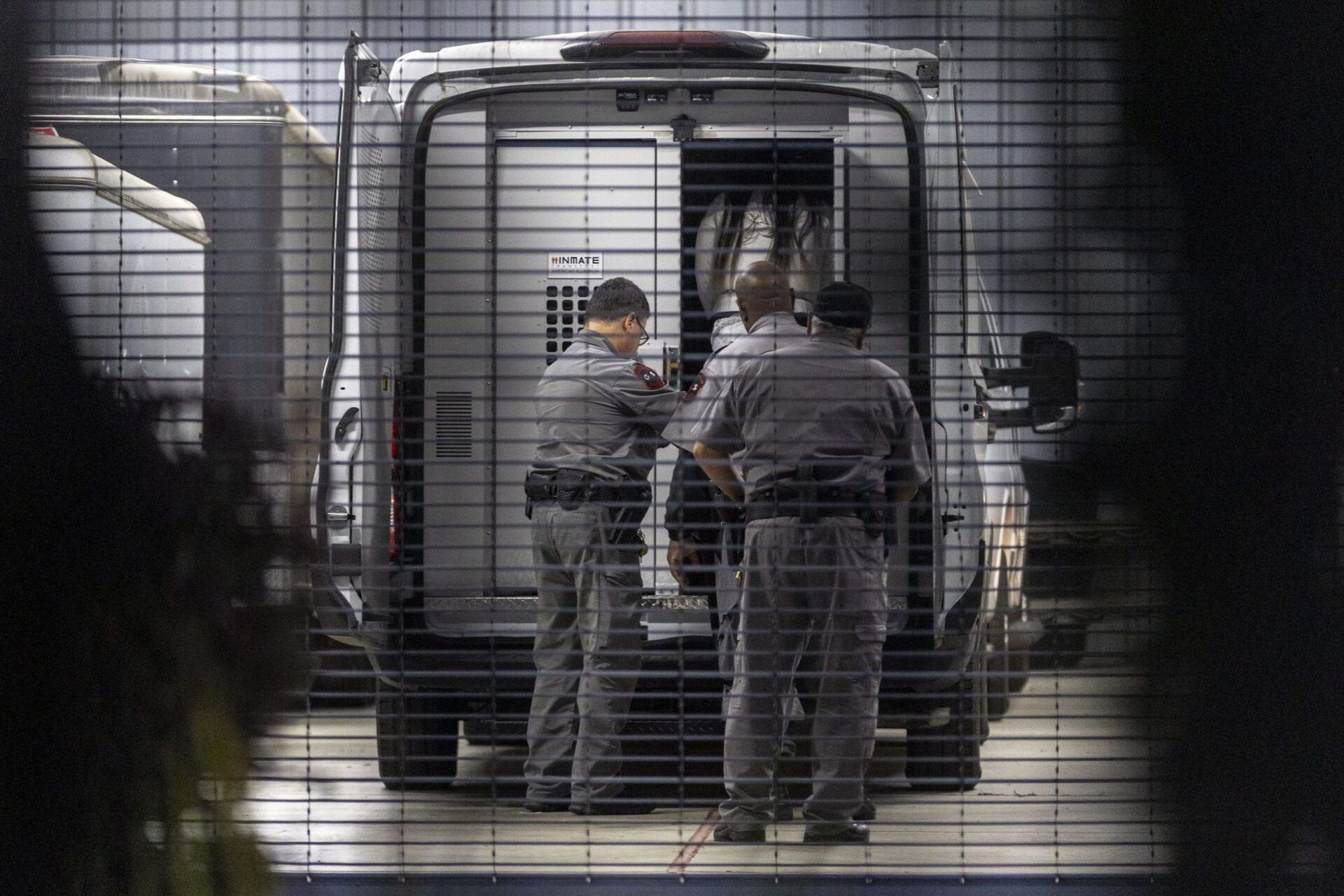 Agents put people into a van at a U.S. Immigration and Customs Enforcement office in Stockton on Saturday, Oct. 25, 2025. (Photo by Annie Barker/Stocktonia/CatchLight Local/ Report for America)