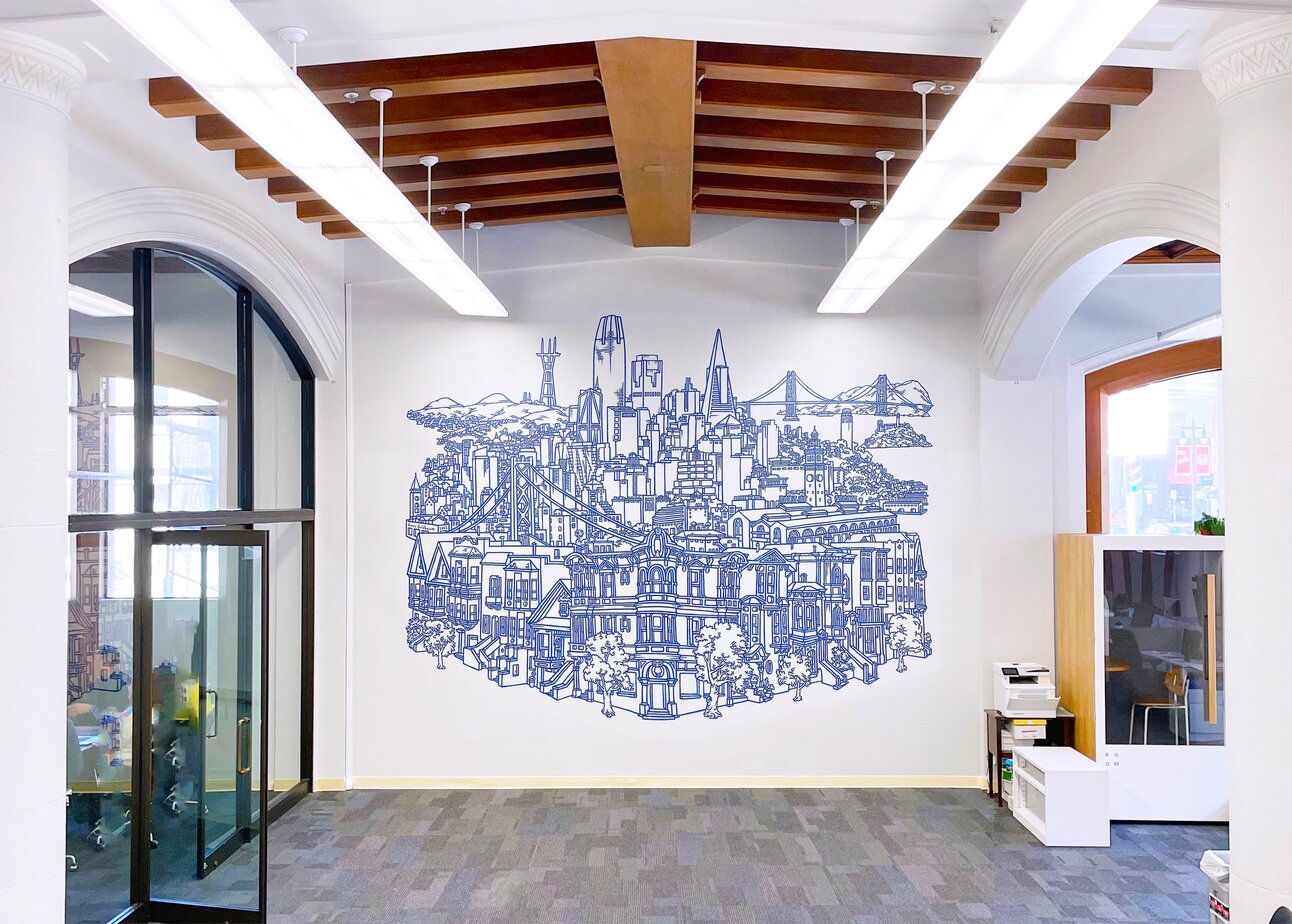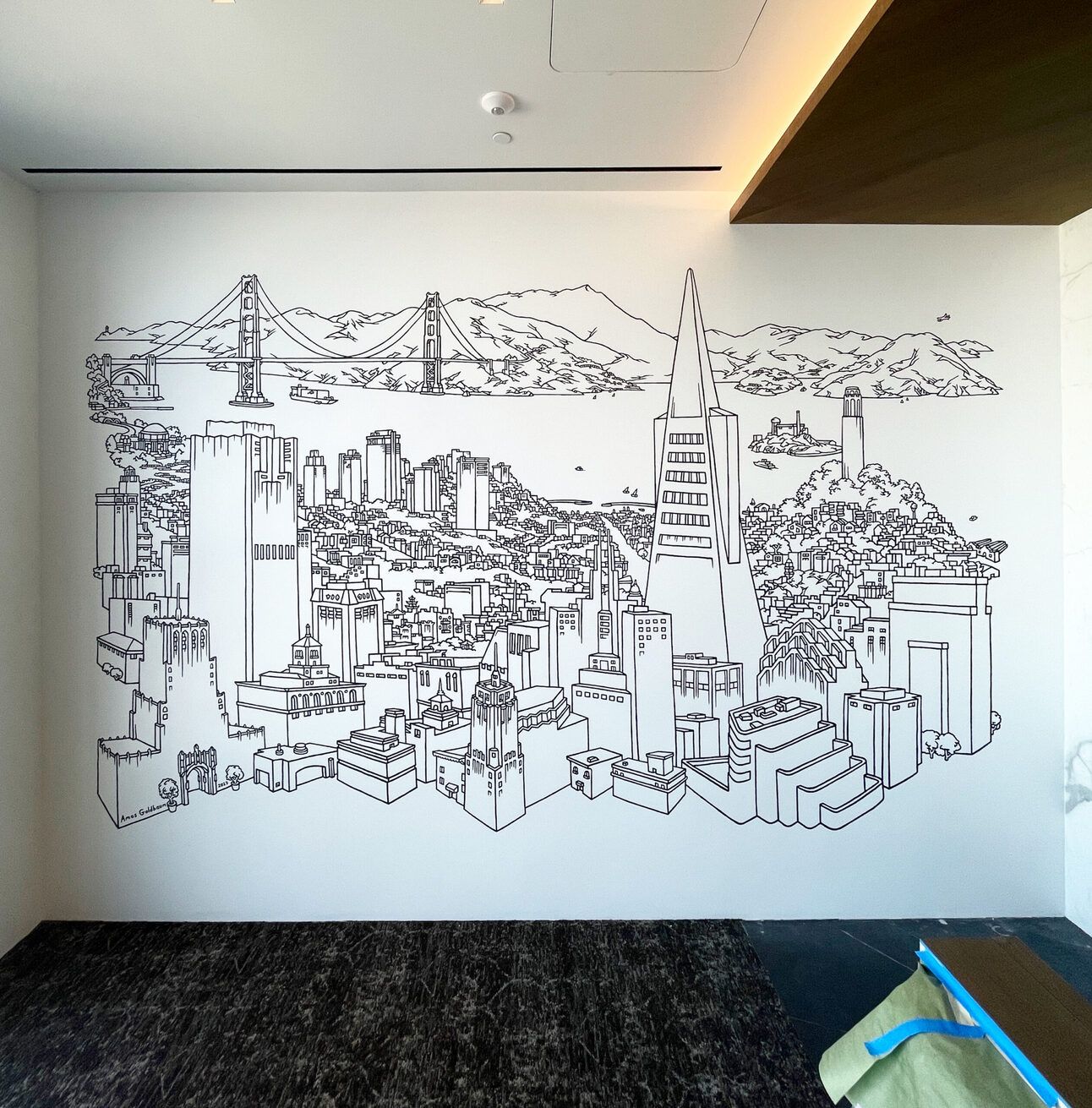 “City in a Block” SFGATE offices,16’x16,’ acrylic on wall, 2022