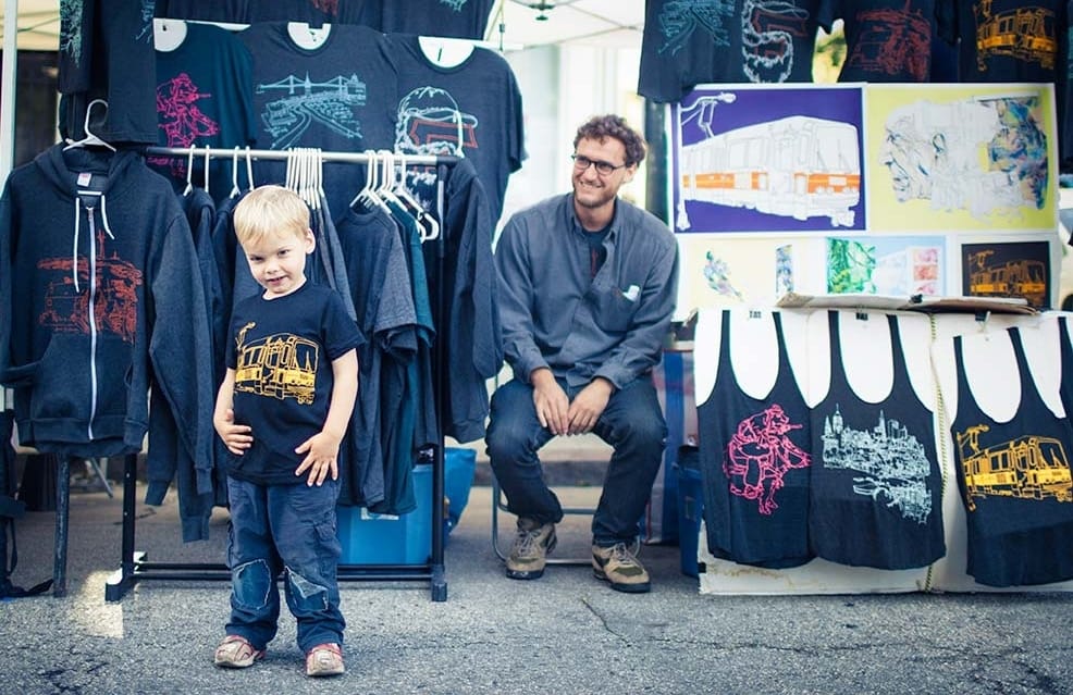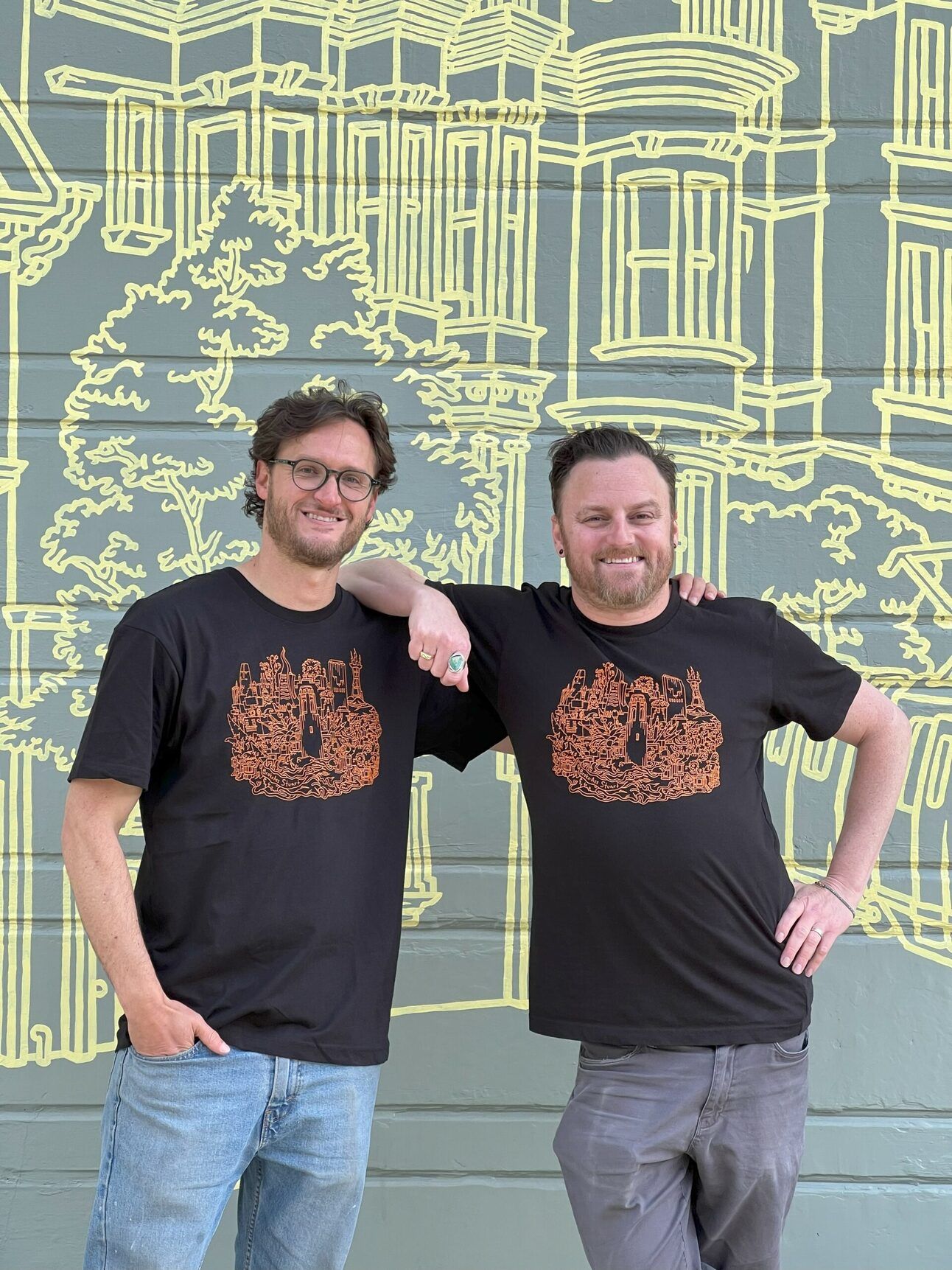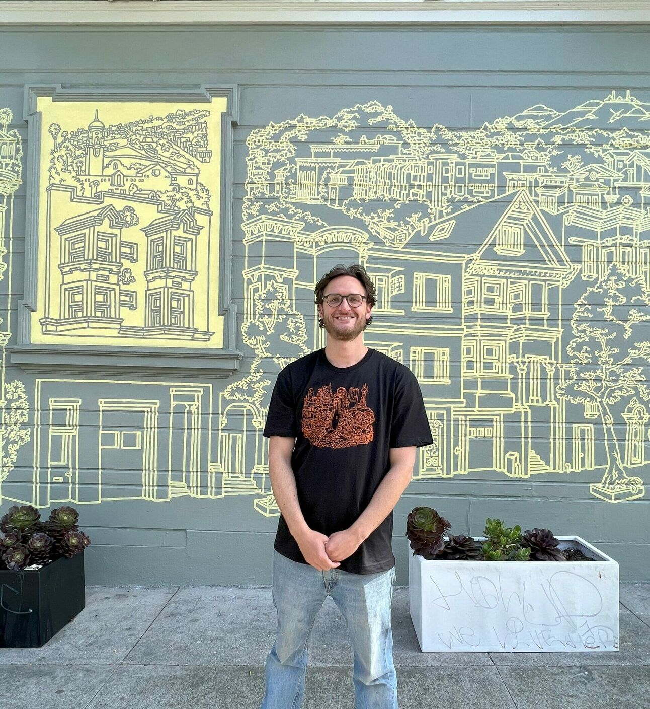 For that type of city slicker, it’s easy to love the fine line work of Amos Goldbaum. His designs can make you feel like you are on top of one of San Francisco’s 48 hills, soaking in a cityscape, or looking out of a MUNI bus window, literally passing Ol’ Amos while he’s selling his shirts and prints on Valencia or Market street.