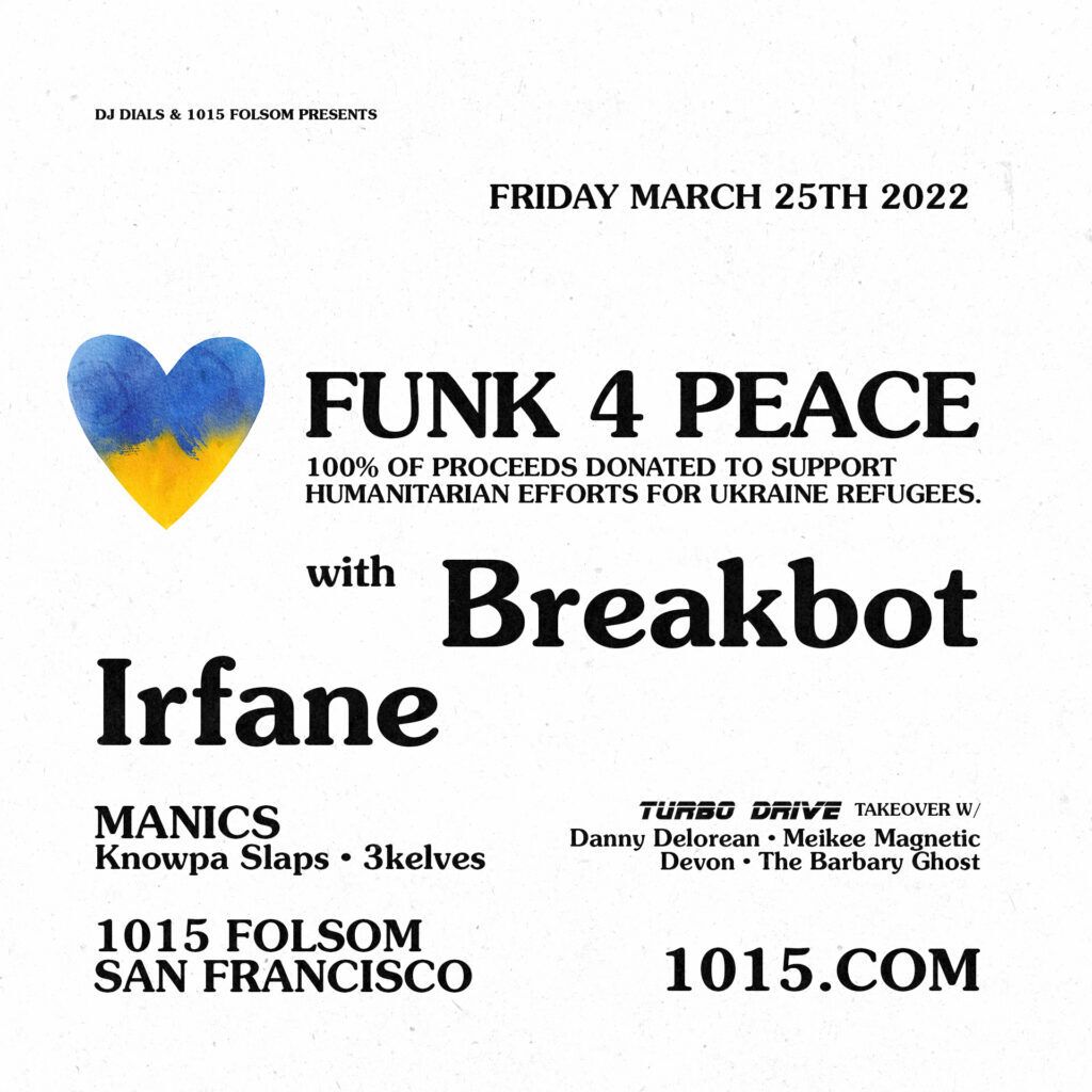 FUNK 4 PEACE w/ BREAKBOT + MoreWith the tragic events that are occurring, the team came together and decided we’d like to help. In coordination with Breakbot, DJ Dials, and all involved our March 25th event will see 100% of proceeds being donated to support humanitarian efforts for Ukraine refugees! The money will be donated to United Help Ukraine