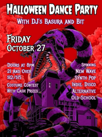 Join us for a Halloween Dance Party. We will have a costume contest with cash prizes!