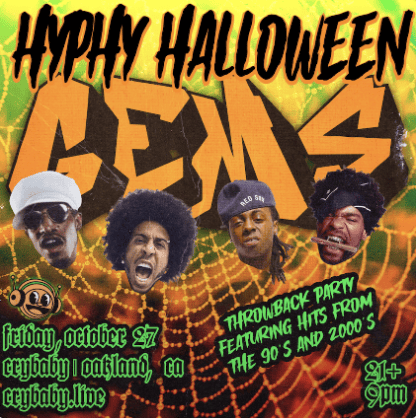 Gems! The Bay’s Best Throwback Party: Hyphy Halloween!10/27 | Crybaby | 1928 Telegraph Ave, Oakland | 9 pm | $10
