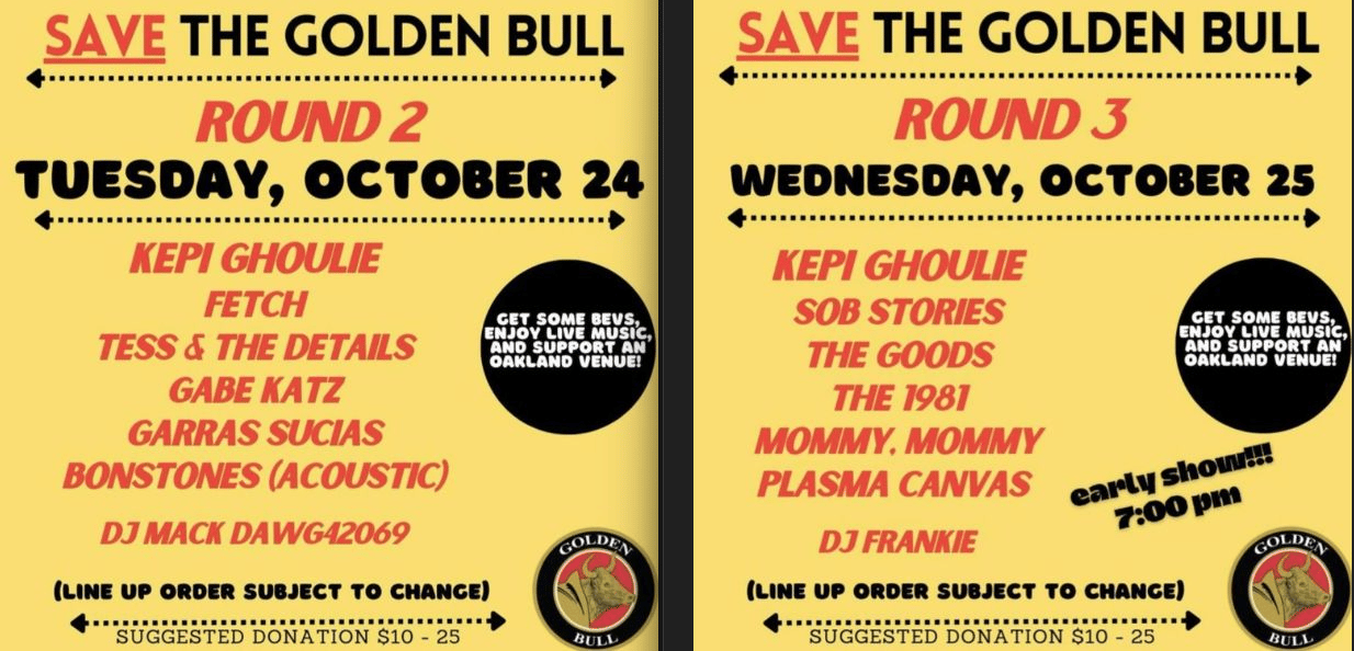 Golden Bull Benefit Party10/24-10/25 | The Golden Bull | 412 14th St, Oakland | 7 pm | $10-25 suggested donation