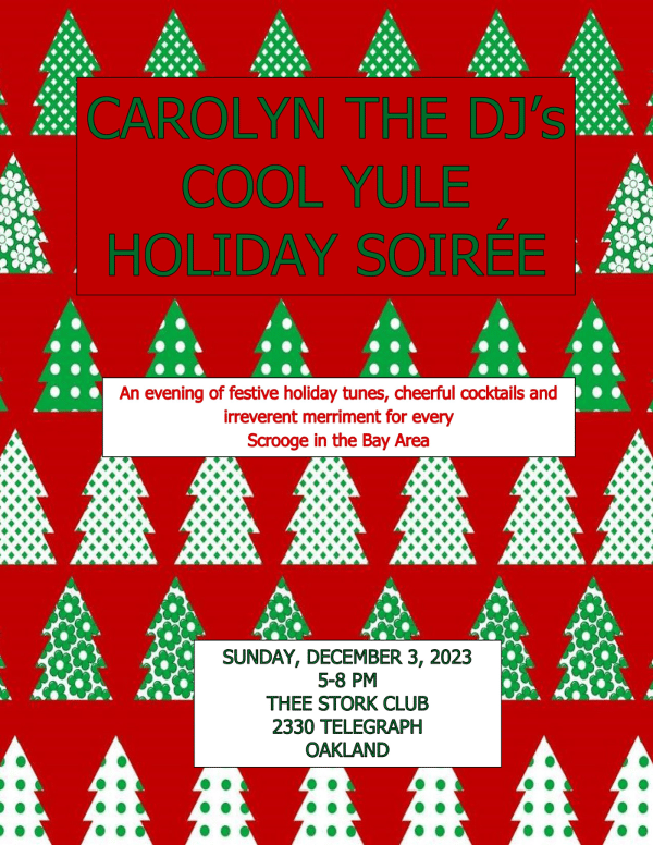 Carolyn The DJ’s Cool Yule Holiday Soirée12/3| Thee Stork Club | 2330 Telegraph Ave, Berkeley | 5-8 p.m. | Free