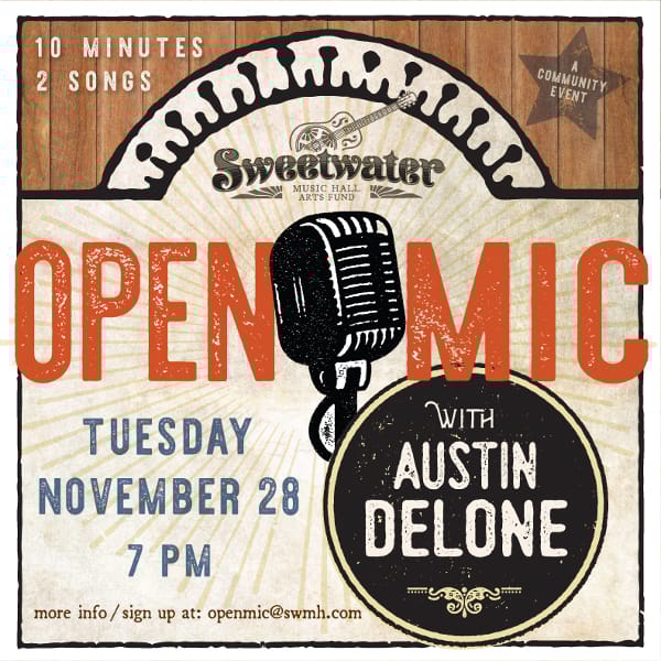 Open Mic Night with Austin DeLone11/28 | Sweetwater Music Hall | 19 Corte Madera Ave, Mill Valley | No Cover