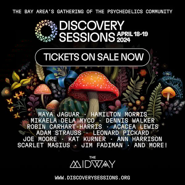 Discover the SF Bay Area’s most sought-after underground gathering of the psychedelics community. On April 18th and 19th, immerse yourself in breakthrough panels on cutting-edge science, therapeutics, culture, and business, a captivating psychedelic art gallery, and unique live experiences. This year’s impressive speaker lineup includes industry leaders Maya Jaguar, Hamilton Morris, Mikaela de la Myco, Robin Carhart-Harris, Acacea Lewis, Joe Moore, Dennis Walker, Jim Fadiman, and many more. You can view the diverse programming schedule and get your tickets at www.discoverysessions.org. Use promo code: discobroke20 for 20% of tickets!