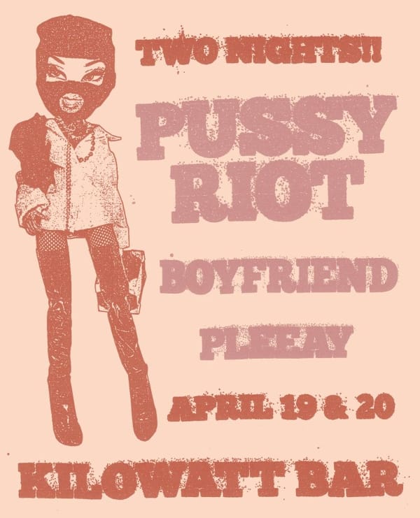 Pussy Riot, Boyfriend & Pleeay4/19-4/20 | Kilowatt Bar | 3160 16th St, SF | 8 p.m. | $51.50, 21+