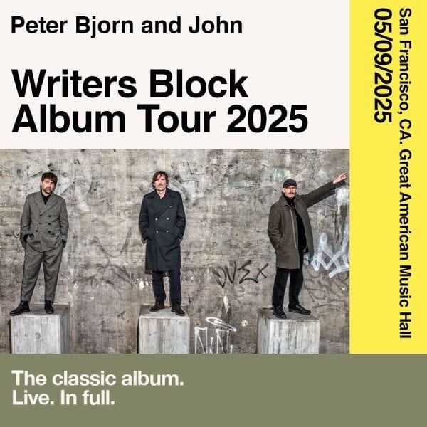 Friday 5/9Peter Bjorn and John5/9 | Great American Music Hall | 859 O’Farrell St, SF | 8 p.m. | $32.50-$35Acclaimed Swedish indie-pop band Peter Bjorn and John are bringing their iconic album Writer’s Block back to life on a highly anticipated U.S. tour. This marks the band’s first stateside tour in six years and commemorates the 19th anniversary of their breakthrough LP, originally released in 2006.