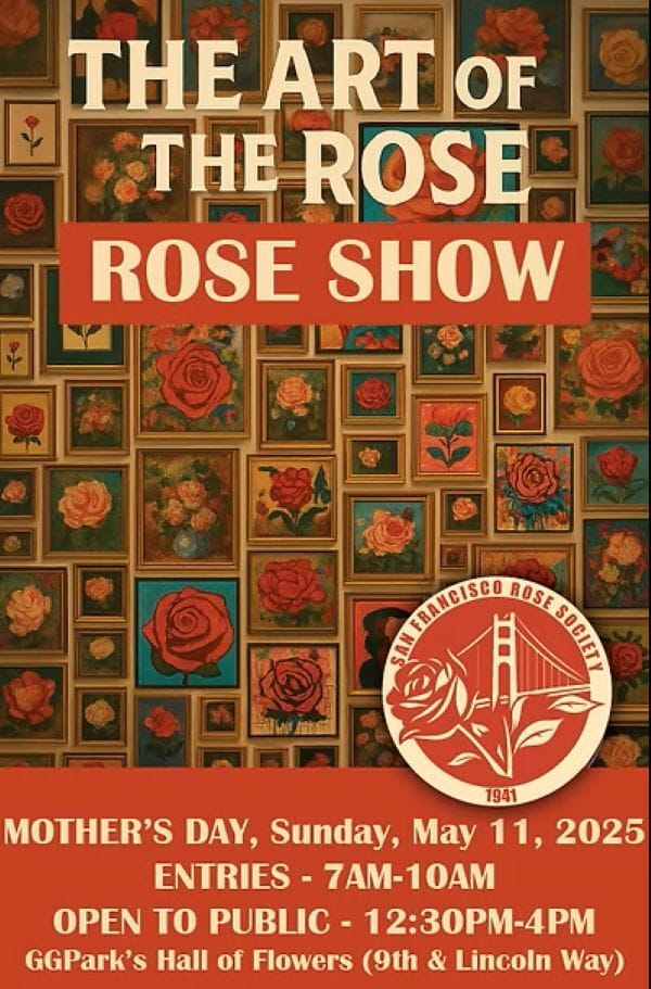Sunday 5/11Theatre Flamenco of San Francisco Tríptico5/11 | Dance Mission Theater | 3316 24th St, SF | 7 p.m. | $27.27Tríptico is a captivating flamenco performance that blends the passion and tradition of flamenco with the innovative spirit of contemporary dance. Artistic Director and flamenco dancer Carola Zertuche leads this dynamic collaboration, where three dancers—Zertuche, contemporary artist Nol Simonse, and flamenco dancer Nevarez Encinias—explore the intersections of movement, gender, and expression.Annual 84th Mother’s Day Rose Show – Art of the Rose5/11 | Hall of Flowers | 1199 9th Ave, SF | 12:30 p.m. | FreePlease join us this year at our popular, indoor, rose show at the historic County Fair Building Hall of Flowers in Golden Gate Park, San Francisco. On display will be a variety of roses including hybrid teas, floribundas, grandifloras, shrubs (for those who love David Austin roses), old garden roses, and more grown in San Francisco. We will also have rose arrangements on display designed by our members. This year’s arrangement theme is “THE ART OF THE ROSE,” which will inform the design of the arrangements. Consulting Rosarians will be on hand to answer your questions. Our popular book, “Growing in the San Francisco Bay Area and Other Maritime-Influenced Climates,” will also be for sale. Come join us and bring your mom.
