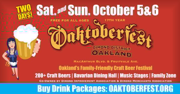 The 17th Annual Oaktoberfest in the Dimond, Oakland’s signature family friendly craft beer festival, returns on Saturday & Sunday, October 5th and 6th with live performances on 5 stages of music, 200+ craft beers, artisan marketplace, traditional food & more.