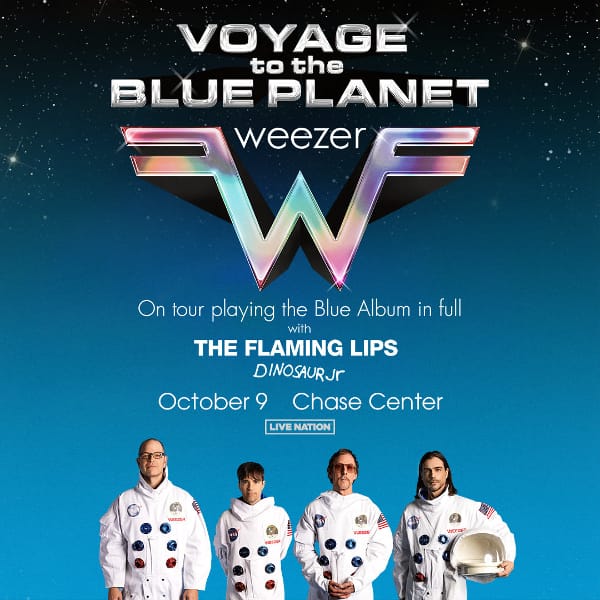 Weezer is bringing their Voyage to the Blue Planet Tour to Chase Center on Wednesday, Oct. 9, 2024 with support from The Flaming Lips and Dinosaur Jr.