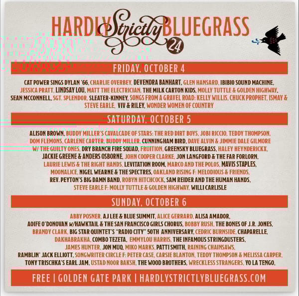 Friday 10/4Hardly Strictly Bluegrass 202410/4-10/6 | Golden Gate Park | Hellman Hollow, Lindley & Marx Meadows in Golden Gate Park, SF | 12 p.m. | Free, All agesIt’s the annual free musical festival that celebrates American roots music. The festival features a variety of artists, including bluegrass, funk, rock, soul, and Americana.