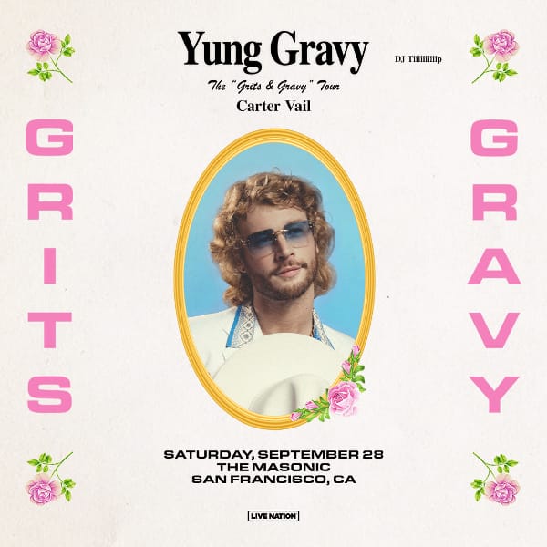 Yung Gravy9/28 | The Masonic | 1111 California St, SF | 8 p.m. | $39.50-$69.50Yung Gravy’s musical style is a blend of modern trap music with vintage themes inspired by the soul and oldies movements of the 1950s and 1960s and soul and funk music of the 1970s and 1980s: his song “Gravy Train” samples Maxine Nightingale’s 1976 song “Right Back Where We Started From”, and his breakout hit “Mr. Clean” samples the popular 1954 song “Mr. Sandman” by The Chordettes.