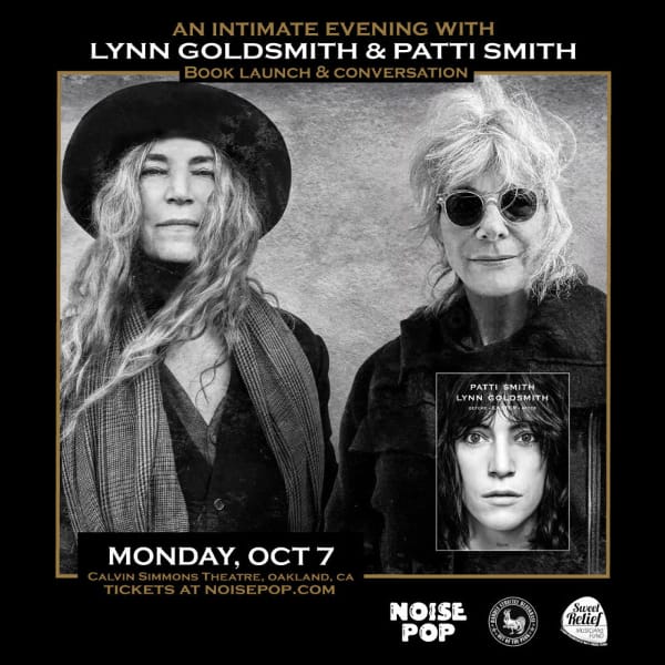 An Intimate Evening with Lynn Goldsmith and Patti Smith in Conversation10/7 | The Calvin Simmons Theatre | 10 10th St, Oakland | 7 p.m. | $45-$85Join for an evening of conversation between poet, musician, and author Patti Smith with the world-renowned celebrity photographer, Lynn Goldsmith. They will talk about the period of time 1976-1979 from which the images in Lynn’s new Rizzoli coffee table photo book titled “Before Easter After”, were made. The images are an intimate visual survey of the period before and after Patti’s most popular album EASTER. Accompanying many of the images are some of Patti’s lyrics as well as never before seen writing from that time. The book, signed by both artists, documents not only a transformative moment in Patti Smith’s career, it celebrates two women who were and still are breaking boundaries with their work.