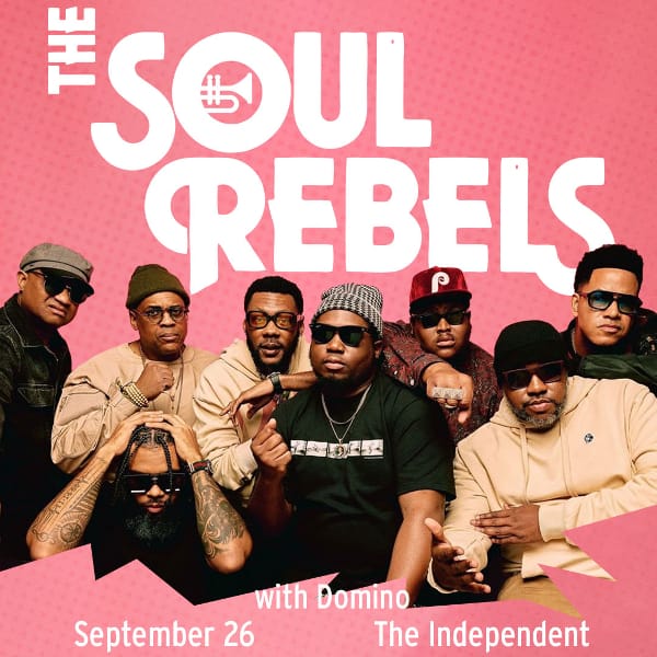 The Soul Rebels9/26 | The Independent | 628 Divisadero St, SF | 8 p.m. | $29.50/advance, $35/doorThe Soul Rebels started with an idea – to expand upon the pop music they loved on the radio and the New Orleans brass tradition they grew up on. They took that tradition and blended funk and soul with elements of hip hop, jazz and rock all within a brass band context. The band has built a career around an eclectic live show that harnesses the power of horns and drums in a deep pocket funk party-like atmosphere.
