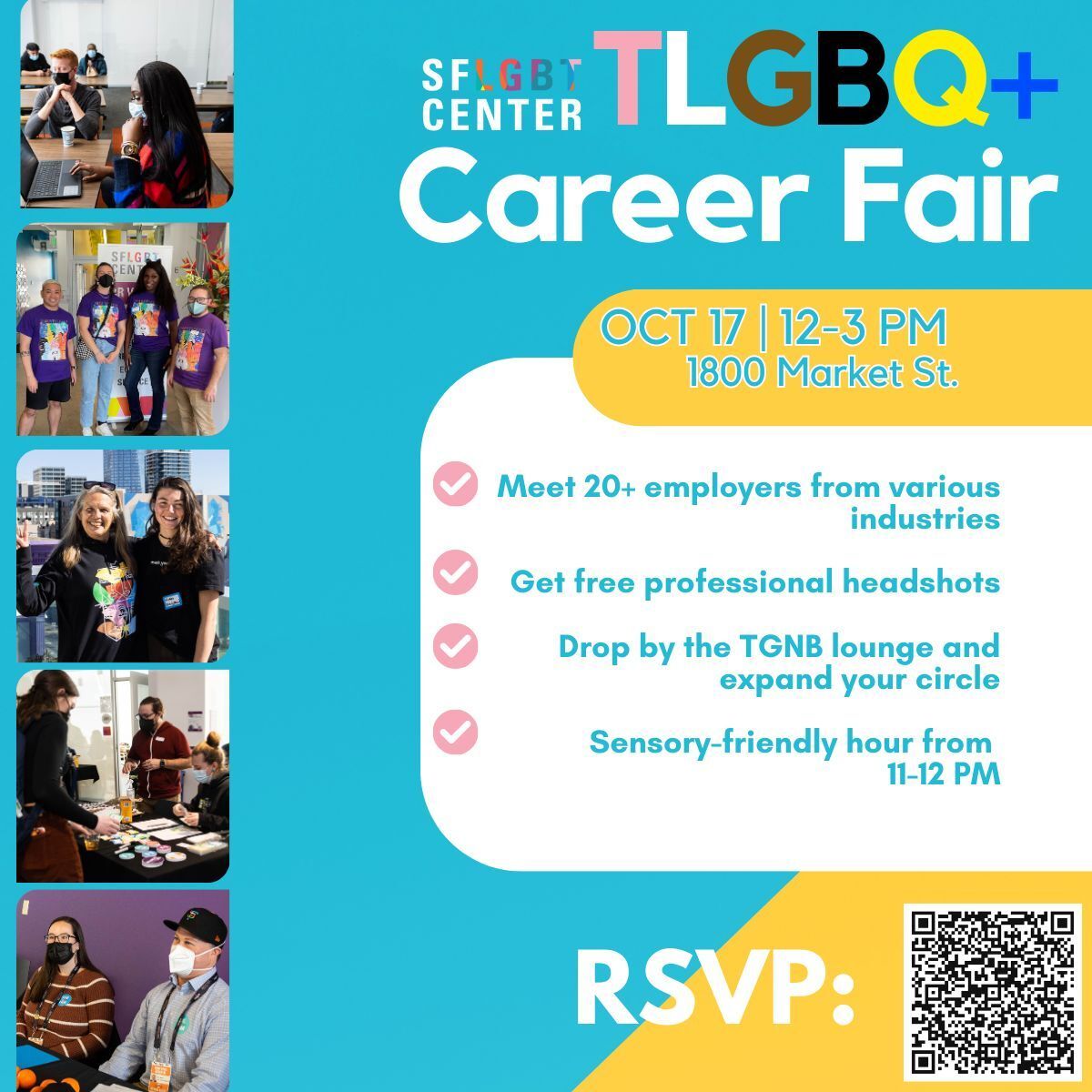 Fall 2023 TLGBQ+ Career Fair10/17 | SF LGBT Ceneter | 1800 Market St, SF | 12-3 pm | free