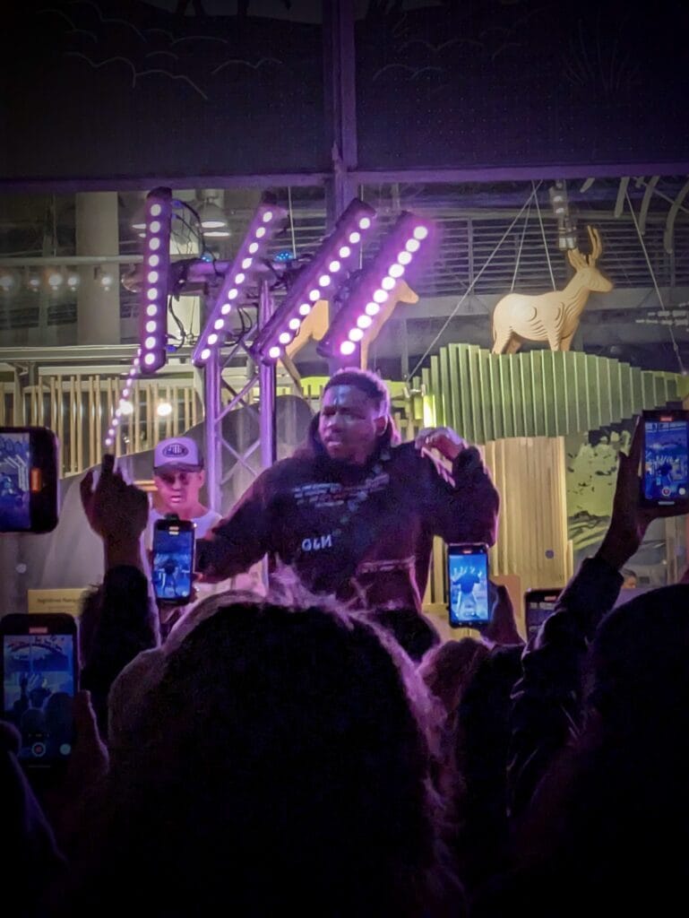 I’ll be the first to admit I don’t go way deep into LaRussell’s catalog but I was impressed to see a deeper side speaking on life and death and personal conflicts the artist has experienced, expressing this sometimes just over the keyboard melodies. There were real spoken word, poetic, heartfelt moments. This is all in between his many times jumping off stage and getting his swang on in the crowd.