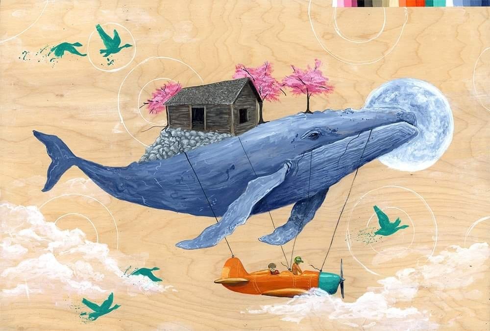 Your art recently explores…Birds! I love painting birds and other animals in often whimsical settings. I love to juxtapose the animals with design elements to tell stories.