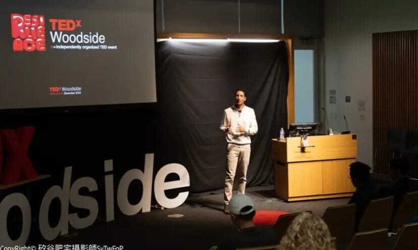 Chad Baron, one of the big brains behind Degrowth California, speaking at Stanford in early December. (Silicon Valley Taiwanese Fatty Otaku Photographer)