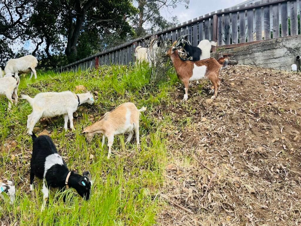 East Bay Goat Grazing, is an affiliate of the national network, Goats on the Go. We got our first animals May 7, 2023, and have done more than 60 jobs in the East Bay. In Berkeley, Oakland, Piedmont, Alameda, El Cerrito, Orinda, Lafayette, Hayward, Fremont,” says Kenefick.