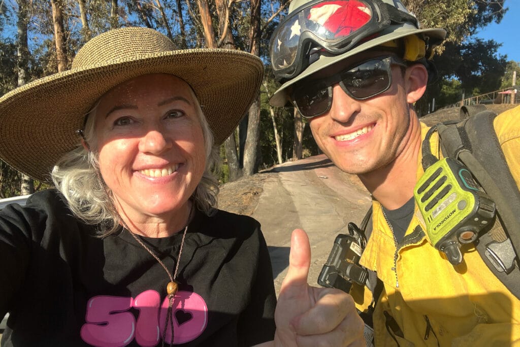 Molly Kenefick of East Bay Goat Grazing with one of the firefighters