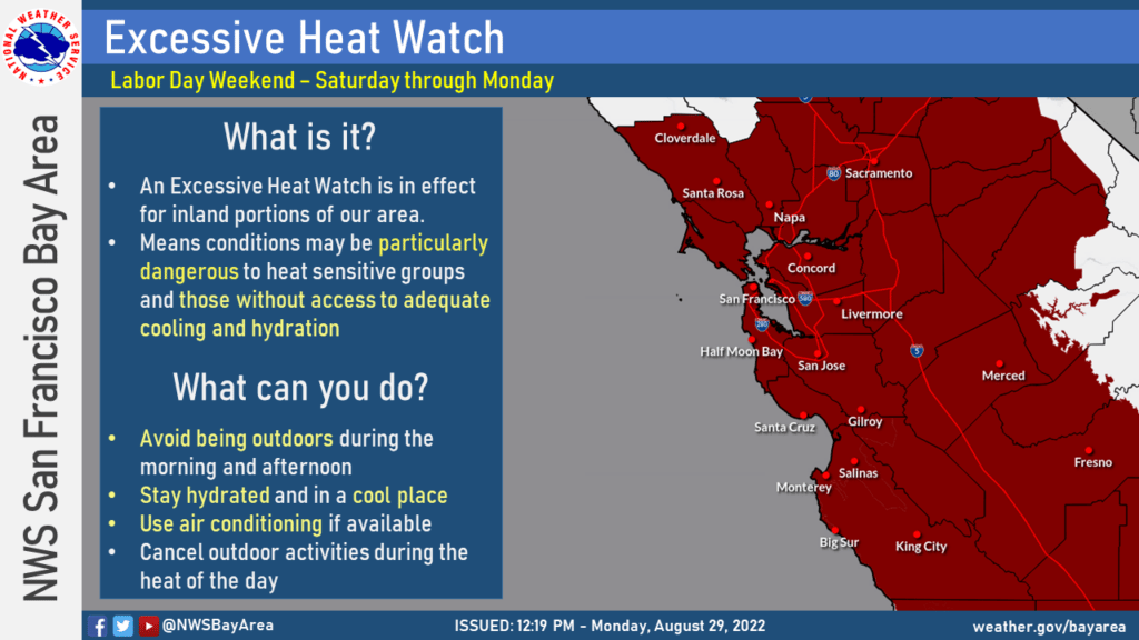 Another heat wave is heading to the Bay Area this weekend and the National Weather Service has issued an excessive heat watch for most of the region.