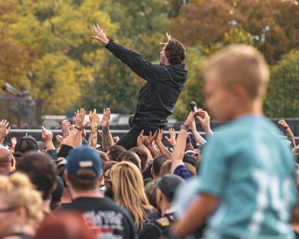Whether biological or logical, born or found, those who we hold onto and those we meet that we can genuinely call family is a beautiful, and sometimes, zany thing. New family, old family, family near, and far – finding the humans and creatures that get you, uplift you, and love you is a gift. Just like the gift that of family, Riot Fest also keeps on giving, and we want you and your family to enjoy the brought-and-found family fun – and a little dysFUNction – we spotted over three days of Chicago’s international stepchild of a festival (if we say family 10 more times we owe Vin Diesel money). Let’s take a look at the Riot Fest Family 2023 scrapbook… shit now it’s nine more times.