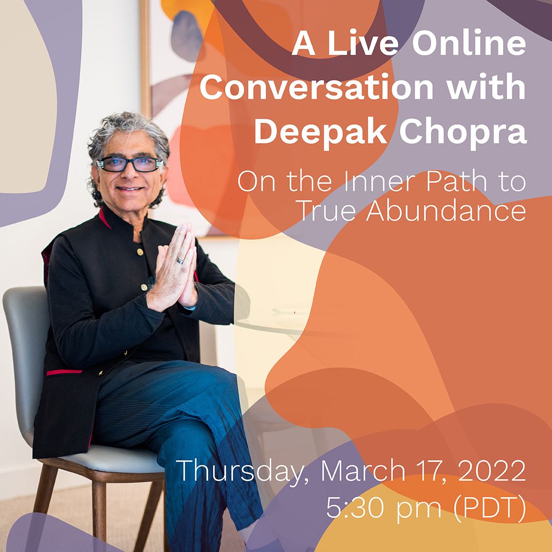 Join CIIS Public Programs for a live online conversation with spiritual teacher and international bestselling author Deepak Chopra and CIIS Chair of Integrative Health Studies Meg Jordan exploring how to tap into a deeper sense of awareness to become an agent of change in your own life. Drawing upon ancient teachings, spiritual practices, and wisdom he’s garnered for over four decades as a leading figure in mind-body medicine, Deepak discusses how to transcend self-generated feelings of limitation and fear in order to experience true abundance in all aspects of life. Ticket includes access to the private live online conversation, recording of the livestream until March 24, 11:59PM (PDT), and a copy of Deepak’s newest book, Abundance: The Inner Path of Wealth.
