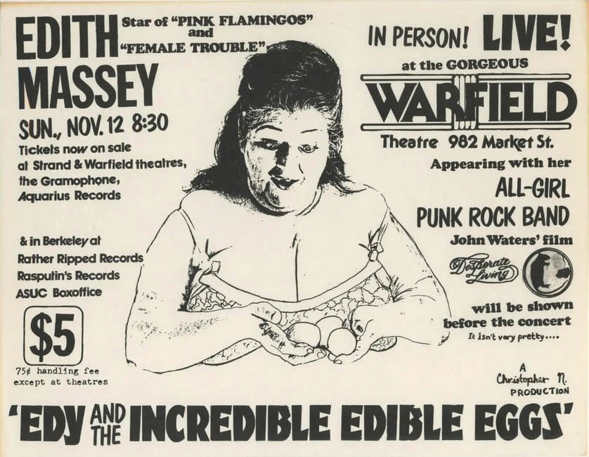 I first met Gina Schock in 1978 when she played with Edie and The Incredible Edible Eggs, a band that John Waters masterminded to promote his film Desperate Living. It was at The Warfield in San Francisco and it was unforgettable. A few months later Gina moved to LA from Baltimore and joined The Go-Go's and was propelled to fame.